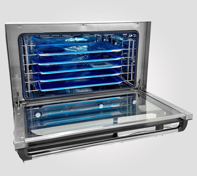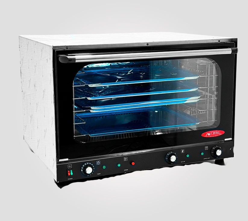 • Incorpora sistema de convección con turbina, que distribuye el calor de manera homogénea en todos los niveles, logrando panes con corteza perfecta y productos de repostería con dorado uniforme. Su función de inyección de vapor mejora la textura, el crecimiento y el acabado profesional de cada pieza. Su estructura robusta y cámara amplia permiten trabajar múltiples bandejas simultáneamente, optimizando tiempos de producción sin sacrificar calidad