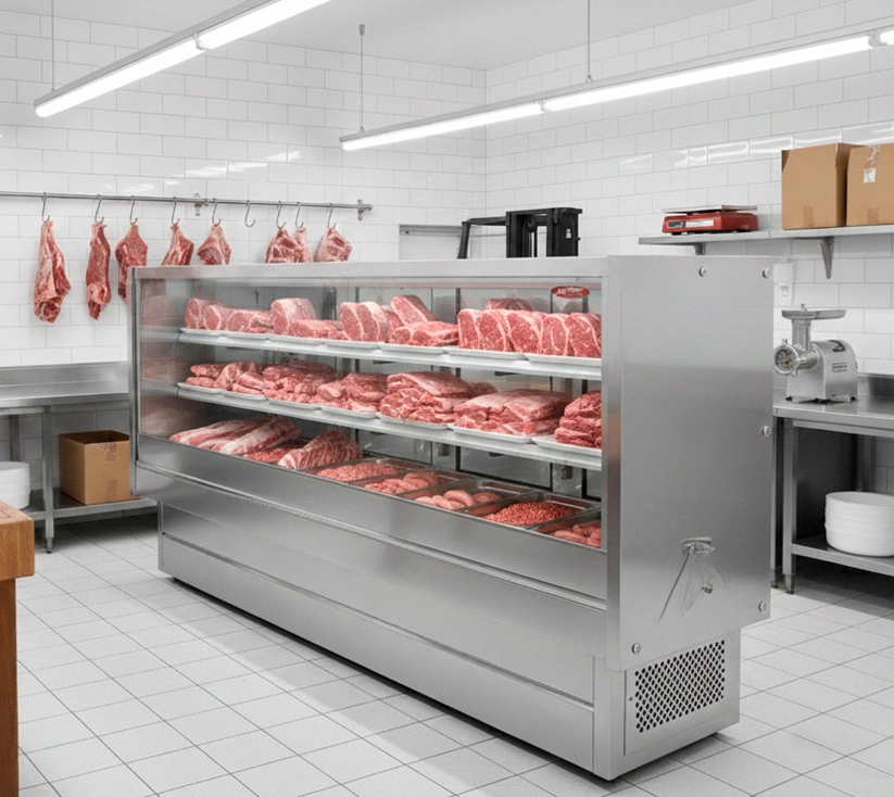 40 Años de Refrigeración al servicio de la frescura de tu carne. Nuestra Vitrina Frigorífica Premium combina la experiencia Nibec, con iluminación especializada y temperatura ideal. Exhibición y conservación de máxima calidad para que la frescura de cada corte se vea y se venda.