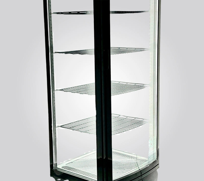 Elegancia, capacidad y espacio en un solo diseño. Su forma vertical optimiza el espacio de exhibición y ofrece una visual panoramica limpia y dividida por niveles logrando asi una exhibicion de varios tipos de postres.