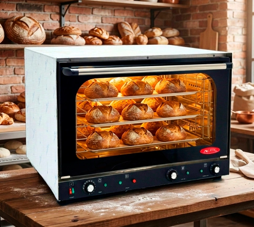 • Incorpora sistema de convección con turbina, que distribuye el calor de manera homogénea en todos los niveles, logrando panes con corteza perfecta y productos de repostería con dorado uniforme. Su función de inyección de vapor mejora la textura, el crecimiento y el acabado profesional de cada pieza. Su estructura robusta y cámara amplia permiten trabajar múltiples bandejas simultáneamente, optimizando tiempos de producción sin sacrificar calidad