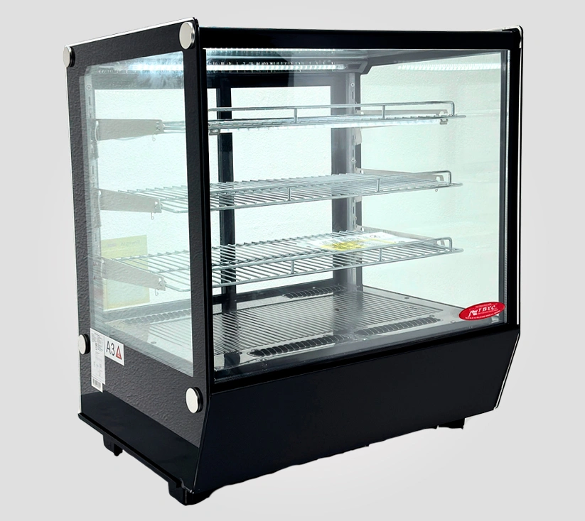 • La Vitrina Pastelera Tres Niveles ofrece amplia capacidad de exhibición gracias a sus tres entrepaños, permitiendo organizar tortas, cupcakes y repostería de forma atractiva y ordenada. Su sistema de refrigeración mantiene temperatura uniforme, conservando textura, sabor y presentación.